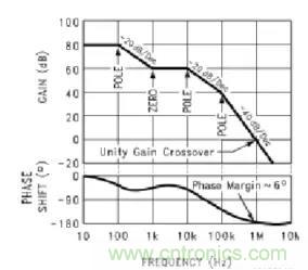看似上面的分析比較復(fù)雜,其實(shí)是自動(dòng)控制理論里面的傳輸函數(shù)和根跡圖的概念.簡單的說,一個(gè)(線形)系統(tǒng)是否穩(wěn)定(不會產(chǎn)生振蕩)取決于它的傳輸函數(shù)的極點(diǎn)分布.(極點(diǎn)的實(shí)部必須小于零),而且極點(diǎn)實(shí)部負(fù)數(shù)的絕對值越大,系統(tǒng)越穩(wěn)定.我們就可以通過增加極點(diǎn)或是零點(diǎn)來調(diào)節(jié)相位裕度,從而使系統(tǒng)達(dá)到穩(wěn)定。
