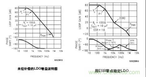 輸出電容的ESR在回路增益中產(chǎn)生一個(gè)零點(diǎn),用來減少過量的負(fù)相移。增加系統(tǒng)的帶寬,使更穩(wěn)定。零點(diǎn)處的頻值: