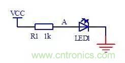 在電源與電路的A之間接入電阻時(shí),A點(diǎn)的電壓就比電源電壓低,可以為發(fā)光二極管提供合適的電壓。電阻R1同時(shí)限制該條支路的電流,保護(hù)發(fā)光二極管不會(huì)因?yàn)殡娏魈蠖鵁龎模@種電阻在電路中一般稱為降壓電阻或者是限流電阻。