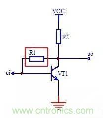 三極管的基極需要直流工作電壓,此時(shí)可以用一只電阻接在直流工作電壓與該三極管基極之間,電源通過(guò)電阻R給基極提供偏置電壓,電阻R1的大小決定了偏置電壓的大小,這種電阻在電路中一般稱為偏置電阻。