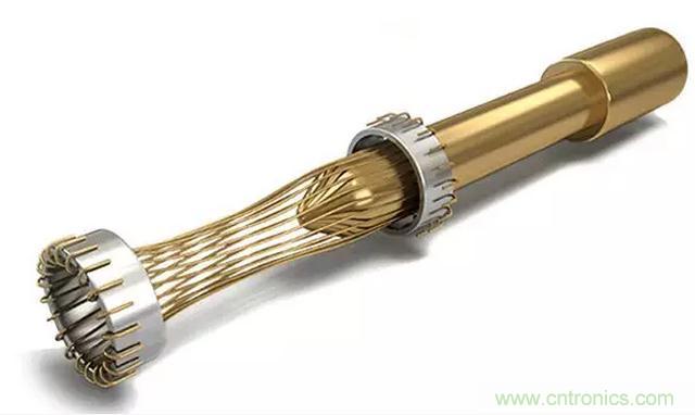 彈簧探針是眾所周知常用于測試設(shè)備,但同樣的屬性,也非常匹配一次性醫(yī)療設(shè)備。例如,制造成極小的直徑就可以開發(fā)極高密度的連接器,在應(yīng)用單個觸點(diǎn)和適宜的尺寸上是非??尚械摹椈商结樇夹g(shù)還允許較高的順應(yīng)性與長度比,這使得制造商可以設(shè)計(jì)密度到2mm的連接器,同時(shí)保持0.5mm的順應(yīng)性。這些連接器一般尺寸較小,也適合于拔插次數(shù)多以及振動大的環(huán)境。