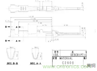 從該圖紙英文品名為端子,且是接插式方式連接,根據(jù)材質(zhì)顯示為黃銅,所以歸入品目8536.9項下,再根據(jù)具體的電壓,歸入相應(yīng)的子目。