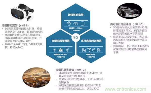 未來5G將應(yīng)用在增強(qiáng)移動寬帶(eMBB)、高可靠低時(shí)延通信(uRLLC)、海量機(jī)器類通信(mMTC)三大場景。而這需求的是非常寬的帶寬,非常高傳輸?shù)乃俾剩浅?煽康牡脱訒r(shí)的連接,另外,還需要海量機(jī)器類型連接的網(wǎng)絡(luò)。