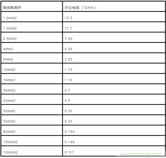 20℃時:17.5÷截面積(平方毫米)=每千米電阻值(Ω)