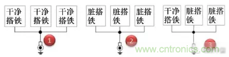 第1種方式干凈搭鐵回路之間的回路并接是允許的;第2種臟搭鐵回路之間的回路并接也是完全可以接受的;對于第3種臟搭鐵與干凈搭鐵回路并接,通常是可以接受的,但需要得到相關專業(yè)的評審通過。