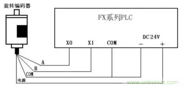 圖2:旋轉(zhuǎn)編碼器與PLC的連接
