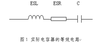 實際電容器的電路模型如圖1所示,它是由等效電感(ESL)、電容和等效電阻(ESR)構(gòu)成的串聯(lián)網(wǎng)絡(luò)。