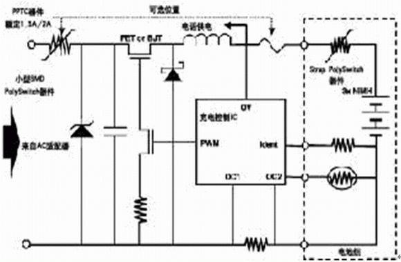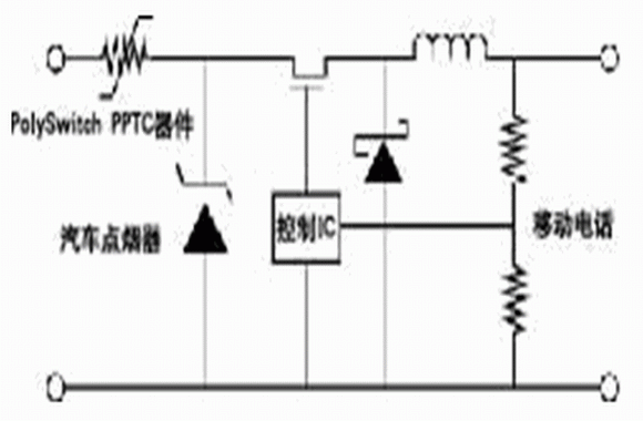(4)PPTC器件還可裝在電池組的輸入端,增加一層保護作用。如果設備是為耳機、汽車免提設備這類有源附件供電時,在電源輸出端,也需要保護。