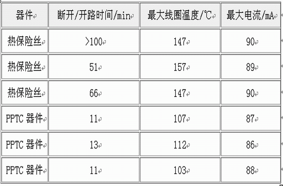 表1 熱保險絲于PPTC器件的性能比較