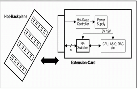 除了一些典型應用以外,例如在ATE和工業(yè)設備中作為模擬輸入的保護,這些低電壓、故障保護型開關還可以在很多其他應用中用來簡化設計和解決板上空間不足的問題。舉例來講,為了避免切斷整個設備機箱的電源,許多應用要求能夠向一個帶電的底板插入擴展卡。盡管可以用MAX4271這樣的熱插拔控制器來限制卡上的浪涌電流,但其信號線的保護并不容易。當你將板卡插入底板時,底板的數(shù)據(jù)總線采用5V TTL電平進行通信,這時卡上的數(shù)字IC (微控制器,ASIC等)就有可能在5V電源接通前在其輸入端“看到”5V電壓。前面已經(jīng)提到,這種情況會導致鎖定或板卡損壞。