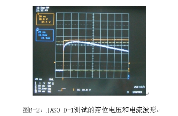 圖B-2:JASO D-1測(cè)試的箝位電壓和電流波形