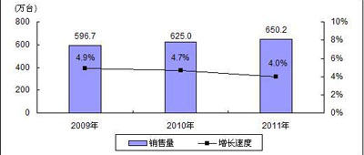 圖1 2009-2011年中國MP3/MP4播放機市場銷售量預測