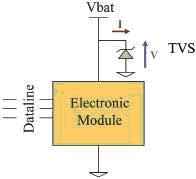 例如,為滿足ISO7637-2標(biāo)準(zhǔn),特別是圖1中的1、2、3a和3b的脈沖要求,只使用一個(gè)瞬變電壓抑制器(TVS)即可有效保護(hù)車載模塊。
