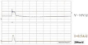 圖10在ISO7637-2脈沖3b測(cè)試過(guò)程中通過(guò)TVS上的電壓和電流