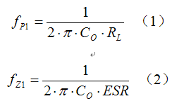 其中:CO為輸出電容,ESR為輸出電容等效串聯電阻,RL為等效負載電阻。