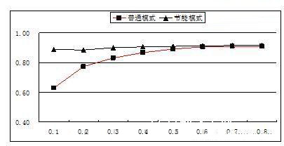 針對(duì)電源部分的損耗,戶外電源的工作模式和室內(nèi)電源是一樣的,正常情況下為均流工作模式。市電正常時(shí)模塊負(fù)載率較低,電源系統(tǒng)大多數(shù)沒有工作在系統(tǒng)最佳效率區(qū)間,因此可以采用電源模塊休眠技術(shù)根據(jù)系統(tǒng)負(fù)載狀態(tài),動(dòng)態(tài)調(diào)整工作模塊數(shù)量,使系統(tǒng)始終工作在最佳效率區(qū)間,從而降低系統(tǒng)的能耗。圖1表示了電源系統(tǒng)在普通工作模式下和節(jié)能模式下的系統(tǒng)典型效率比較。從圖1可看出,采用休眠節(jié)能模式,電源系統(tǒng)的效率在整個(gè)負(fù)載范圍內(nèi)基本保持不變,有效的降低了電源系統(tǒng)在低負(fù)載條件下的能耗。另一方面,對(duì)于戶外電源來說,電源系統(tǒng)效率提高會(huì)降低設(shè)備倉(cāng)的發(fā)熱量,降低設(shè)備倉(cāng)的溫度。