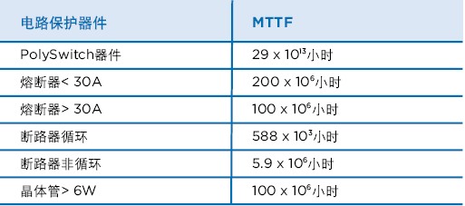 平均故障間隔時間(MTTF)是選擇電路保護器件的另一個重要考慮。MTTF與MTBF(平均無故障時間)的計算相同。其區(qū)別是MTBF是指可維修的系統(tǒng),即一次維修到下一次故障之間的時間。而MTTF則用在無法維修的情況下,如某個單一元件。