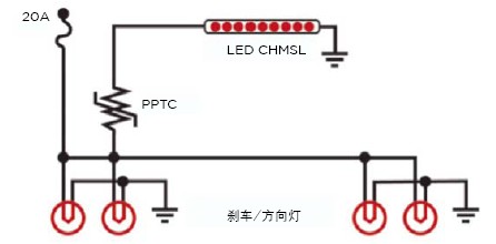 圖6. LED CHMSL應(yīng)用中的分布式線束保護