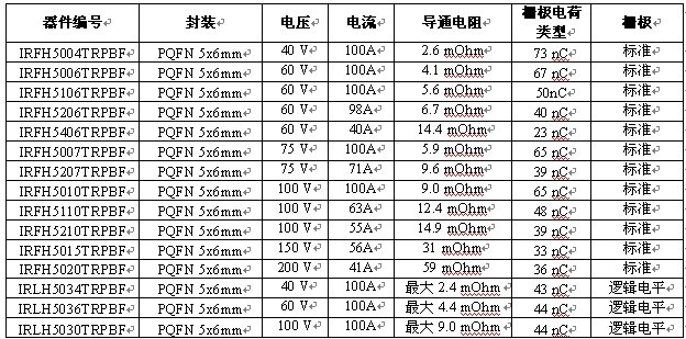 國際整流器公司 (International Rectifier,簡稱 IR) 拓展了 HEXFET功率 MOSFET 產(chǎn)品組合,提供完整的中壓器件系列,它們采用了5x6 mm PQFN封裝及優(yōu)化銅夾和焊接芯片技術(shù)。