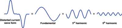大型辦公室和工業(yè)樓宇運(yùn)行著大量的非線性負(fù)載,如PC、激光打印機(jī)、固態(tài)加熱器控制、熒光燈管、不間斷電源以及變速驅(qū)動(dòng)器。與白熾燈的線性負(fù)載相比,其相位電流為一個(gè)正弦波形,從而帶來(lái)巨大諧波含量(見(jiàn)圖2)。