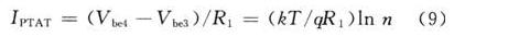 由式(9)可知,流經(jīng)R1的電流與電源無關,只與絕對溫度成正比,即得到PTAT電流。