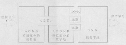 以一塊精度為萬分之一的數(shù)模轉(zhuǎn)換卡為例說明單點接地在實際工程中的應(yīng)用方法。