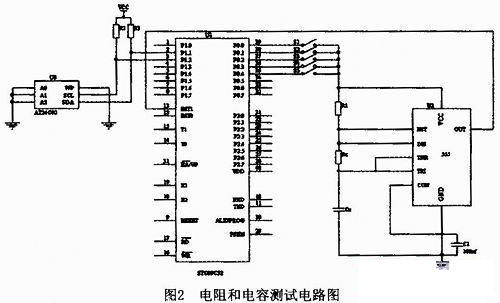 常用的測(cè)量電阻和電容的方法主要有純模擬電路法、PLC法。采用純模擬電路法設(shè)計(jì)電阻電容測(cè)試儀,可以避免編程的麻煩,但是電路復(fù)雜、靈活性差、測(cè)量精度低;采用PLC法設(shè)計(jì)的電阻電容測(cè)試儀速度快、體積小、可靠性和精度好,但是價(jià)格昂貴。采用“脈沖計(jì)數(shù)法”設(shè)計(jì)電阻、電容測(cè)試儀,把電子元件的參數(shù)轉(zhuǎn)換成頻率信號(hào),用單片機(jī)計(jì)數(shù)后再求出電阻或電容值,而頻率是單片機(jī)很容易處理的數(shù)字量。本文采用“脈沖計(jì)數(shù)法”設(shè)計(jì)電阻電容測(cè)試儀,此測(cè)試儀不僅能克服傳統(tǒng)測(cè)試儀的種種弊端,而且增設(shè)了記憶功能和警示信號(hào)功能,使測(cè)試儀更加智能化。