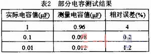 對(duì)測(cè)試結(jié)果進(jìn)行分析,本系統(tǒng)對(duì)10pF~10μF電容測(cè)量較為精確。各檔測(cè)量誤差均在±5%之內(nèi)。