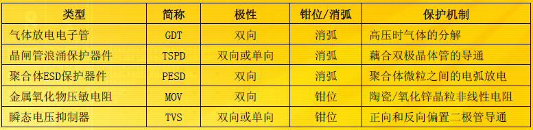 市場上有一系列對電子系統(tǒng)起保護作用的產品。下表簡單描述了各種產品的特征。
