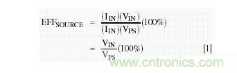計(jì)算和測(cè)量電源效率非常簡(jiǎn)單。EFFSOURCE = (送入調(diào)節(jié)器的功率)/(VPS輸出功率) x 100%: