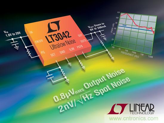 【導(dǎo)讀】近日,凌力爾特公司推出領(lǐng)先的具備超低噪聲、超高電源紋波抑制的低壓差電壓線性調(diào)節(jié)器 LT3042。該器件的優(yōu)勢(shì)在于具有僅為 2nV/√Hz (在 10kHz) 的超低點(diǎn)噪聲和 0.8µVRMS 的積分輸出噪聲 (在 10Hz 至 100kHz 的寬帶寬內(nèi))。該器件低頻和高頻 PSRR 性能使其占有巨大的優(yōu)勢(shì)。低頻 PSRR 超過(guò) 90dB (直到 10kHz),而高頻 PSRR 則超過(guò) 75dB (直到 3MHz),可使噪聲或高紋波輸入電源變得 “安靜”。