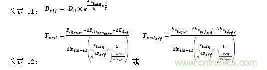 公式11和公式12描述了估算擴散Deff 的系數(shù),以及臨界溫度相關(guān)涂漆或塑模系統(tǒng)的Tcrit 或 Tcrit eff。