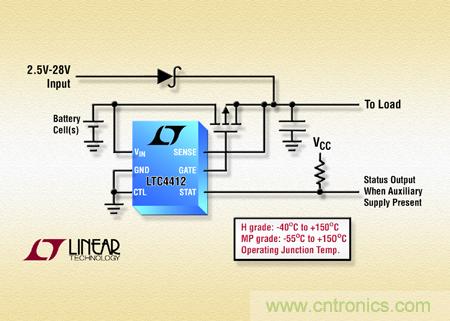 【導(dǎo)讀】近日,凌力爾特公司宣布推出低損耗電源通路控制器LTC4412,該控制器具有最新高可靠性和軍用溫度級版本 ,是堅(jiān)固的“理想二極管”電源通路控制器。LTC4412 可同時(shí)實(shí)現(xiàn)多個(gè)輸入 DC 電源的低損耗 “合路” 操作。