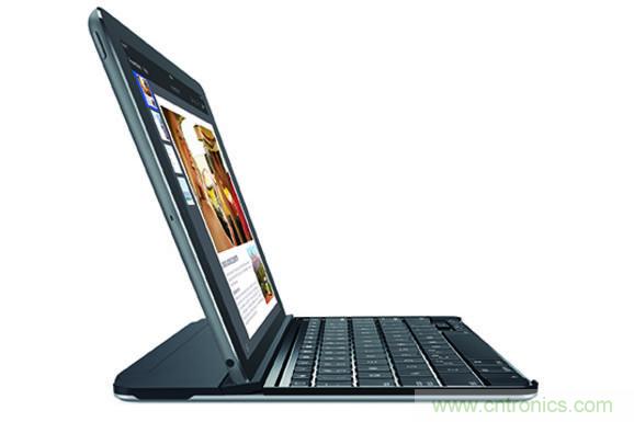 Logitech Ultrathin還帶有一個(gè)磁夾,可以快速并牢固地附著在iPad上;還有一個(gè)用戶可以調(diào)節(jié)的內(nèi)置支架,在輸入或查看時(shí)將iPad調(diào)節(jié)到最佳視角位置。