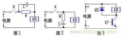 KR在VT導通時,上面電壓為上正下負,電流方向由上向下。在VT關斷時會,KR中電流突然中斷,會產生感應電勢,其方向是力圖保持電流不變,即總想保持KR電流方向為由下至下。這個感應電勢與電源電壓迭加后加在VT兩端,容易使VT出穿。為此加上VD,將KR產生的感應電勢短路掉,電注是你所說的“順時針方向在二極管和繼電器所的小回路里面流動”,從而保護VT。圖2中的R、C也是利用C上電壓不能突變的原理,來吸收感應電勢。(VT三級管,KR繼電器,VD續(xù)流二極管)