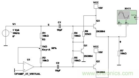 整個(gè)電路設(shè)計(jì)的挺巧妙的。我仿真了一下效果也蠻不錯(cuò)的。這里簡單的對(duì)這個(gè)電路分析一下。