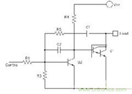 先來看看電路在沒有C2的情況下是如何工作的:控制端由低電平拉升到高電平的過程中,集電極電流增長使得三極管從截止區(qū)—》放大區(qū)—》飽和區(qū)變化,從而使三極管從關(guān)斷狀態(tài)(截止)變?yōu)殚_通狀態(tài)(飽和),注意,開通過程中,集電極電流增長全部靠Vcc提供;反過來,控制端從高電平變?yōu)榈碗娖竭^程中,通過R3對基極電荷的泄放,加速控制三極管從飽和區(qū)—》放大區(qū)—》截止區(qū)變化,并最終變?yōu)殛P(guān)斷狀態(tài)。