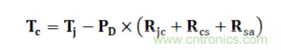 其中Tc為芯片的外殼溫度,PD為芯片在該環(huán)境中的耗散功率,Tj表示芯片的結(jié)點溫度,目前大多數(shù)芯片的結(jié)點溫度為150℃,Rjc表示芯片內(nèi)部至外殼的熱阻,Rcs表示外殼至散熱片的熱阻,Rsa表示散熱片到空氣的熱阻,一般功率器件用Rjc進行計算即可。