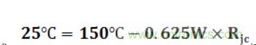 舉個例子來說,大家常用的S8050在25℃(Tc)的最大耗散功率是0.625W,額定電流為0.5A,最高結(jié)點溫度為150℃,此代入公式有: