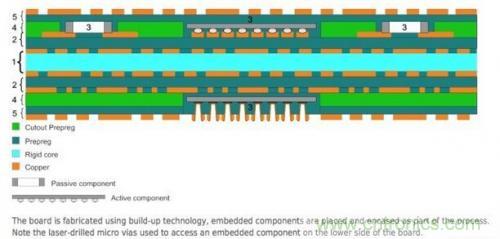 對于開發(fā)者來說目前有幾種嵌入有源元件的方式:模塊電路板(IMB)、嵌入式晶圓級封裝(EWCP)、嵌入式晶片堆層(ECBU)和高分子嵌芯片(CIP)。最后一種方法可以把薄片晶圓封裝直接嵌入到堆疊的介質(zhì)層上,而不是使用通過鉆孔或走線連接到核心材料的凹槽,這種方法也支持FR-4多層電路板。