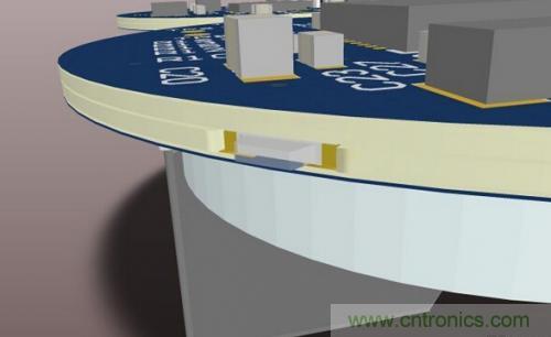 圖2:在圓形PCB板上為SMT LED而設(shè)計的凹槽。