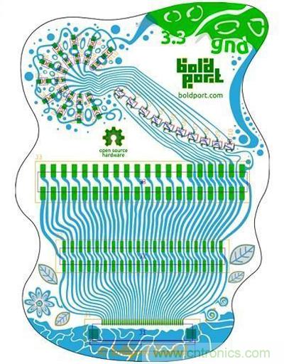 以下是許多有如藝術(shù)品的電路板設(shè)計(jì),對(duì)于這些創(chuàng)作者,筆者忍不住要贊賞他們的努力成果;當(dāng)你在做電路板繞線設(shè)計(jì)時(shí),你可以維持傳統(tǒng)做法使用枯燥簡(jiǎn)潔的線條,但加入一些變化與美學(xué)的繞線形式在功能上并不會(huì)打折扣;看看這些作品,難道你不覺得它們看起來是如此生機(jī)勃勃,比純粹講究實(shí)用主義的四方形綠色塑料板更有“人性”?