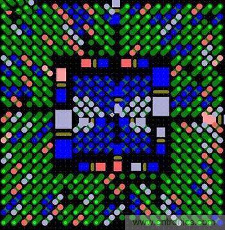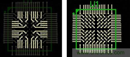 圖6:這種扇出方法避免了使用高端技術(shù),而且不會(huì)影響信號(hào)完整性。BGA引腳分成內(nèi)部引腳和外部引腳兩部分。