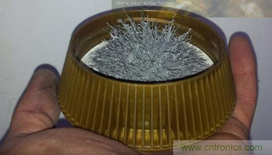 ▼ 重復幾次上面的步驟,直到把電路芯片灰中的金屬全部分離出來。