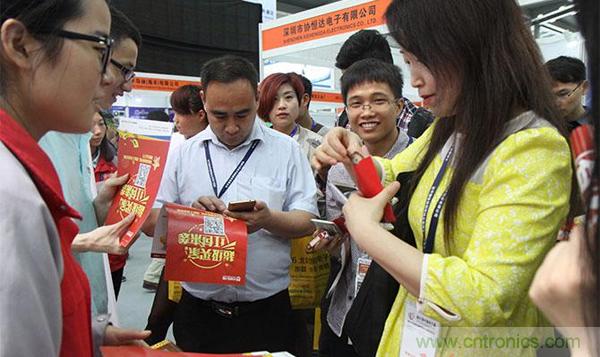 電子商務平臺的崛起,也使得營銷手段更加花樣百出地貼近消費者,再也不是以前坐等顧客上門挑選的被動局面,分銷商在展館里可謂是使出十八般武藝,力圖能激起消費者翻牌的欲望。這不,原先四處走動的觀眾,瞬間被抽中一百塊現(xiàn)金紅包的歡呼聲給吸引了過去,筆者也前往一探究竟,原來是華強電子網(wǎng)的展位上進行的免費認證超級買家抽紅包的活動。