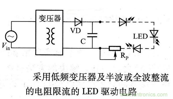 該電路的優(yōu)點是:電路簡單、成本低。缺點是:體積大、電壓驅(qū)動模式,LED亮度會隨著供應(yīng)電壓的變化而有所改變;無法提供恒流輸出;突波電流較大。這種LED驅(qū)動電源的電路結(jié)構(gòu)非常簡單,只需要一個低頻變壓器、整流器、濾波電容,以及一個用于調(diào)整亮度的可變電阻。串聯(lián)LED的數(shù)目主要由變壓器的匝數(shù)比所決定。一旦選用變壓器的匝數(shù)比固定之后,若要得到一樣的亮度9就很不容易再改變LED的數(shù)目。