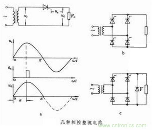 采用相位控制方式以實現(xiàn)負載端直流電能控制的可控整流電路??煽厥且驗檎髟褂镁哂锌刂乒δ艿木чl管。在這種電路中,只要適當控制晶閘管觸發(fā)導通瞬間的相位角,就能夠控制直流負載電壓的平均值。故稱為相控。
