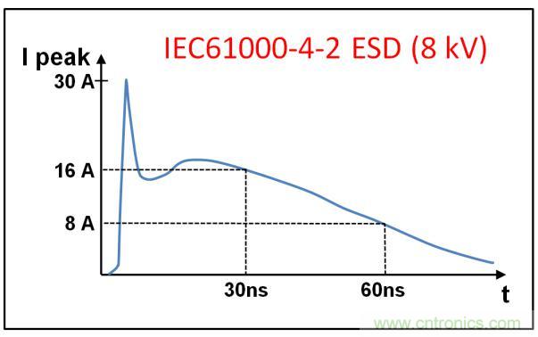 靜電放電(ESD)是指兩個電位不同的帶電體之間因為近接觸或電場的傳導(dǎo)而突然產(chǎn)生靜電電荷的傳輸。其特性是在較短的時間內(nèi)有較大的電流。IEC 61000-4-2測試的主要目,就是確定系統(tǒng)在工作過程中對系統(tǒng)外部ESD事件的抗擾度。IEC 61000-4-2規(guī)定了不同環(huán)境狀況下的電壓測試級別,共分4個級別。1級最輕微,4級最嚴重。1級和2級適合擁有防靜電材料的 受控環(huán)境中安裝的產(chǎn)品。3級和4級適合情況更嚴重的環(huán)境中安裝的產(chǎn)品,這類環(huán)境下更常發(fā)生帶有較高電壓的ESD事件。