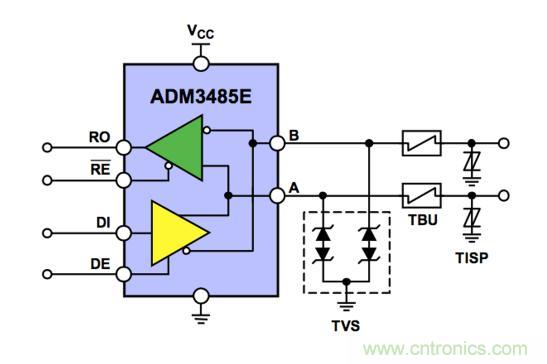 RS-485端口EMC方案相應(yīng)的規(guī)范要求實際上就是保護電路設(shè)計需要達到的目標(biāo)。為了達成這樣的目標(biāo),自有其設(shè)計原則: