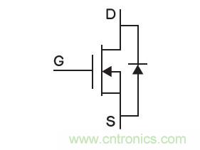 圖1所示是一個(gè)N溝道功率MOSFET的典型符號(hào)。本征體漏二極管由p-body和n-drift兩個(gè)區(qū)組成,如圖1所示,體漏二極管與MOSFET的導(dǎo)電溝道并聯(lián)。